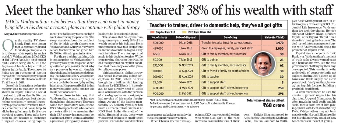 In 2011-12, V Vaidyanathan took control of the erstwhile Future Capital with support from private equity fund Warburg Pincus and launched Capital FIRST.