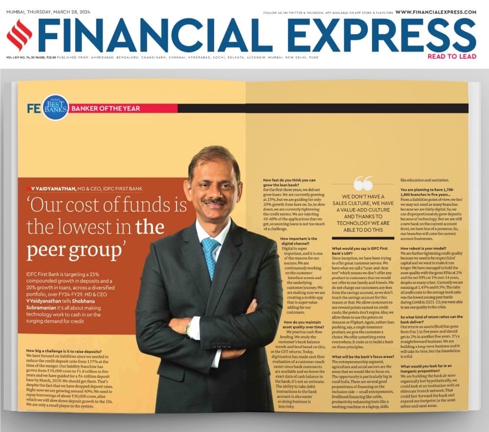 IDFC FIRST Bank is targeting a 25% compounded growth in deposits and a 20% growth in loans, across a diversified portfolio, over FY24-FY29 MD & CEO V. Vaidyanathan tells Shobhana Subarmanian it's all about making technology work to cash in on the surging demand for credit.