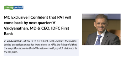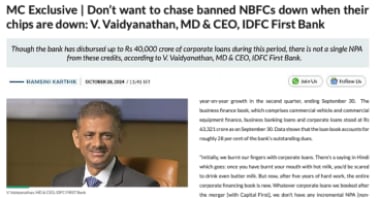 V. Vaidyanathan, Managing Director (MD) & Chief Executive Officer (CEO), IDFC First Bank, weighed in on the reasons that led to lower profits in the second quarter, ending September 30