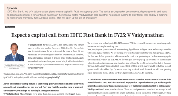 IDFC First Bank, led by V Vaidyanathan, plans to raise capital in FY25 to support growth. The bank's strong market performance, deposit growth, and focus on loan quality position it for continued success in the financial sector.