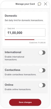 You can conveniently enable Online, Contactless and/or International transactions on your Credit Card through your mobile app.