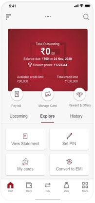 Everything that you need is at your finger tip. View your transactions, reward points, pay your credit card bill, convert transactions into EMIs, manage transaction preferences and much more.