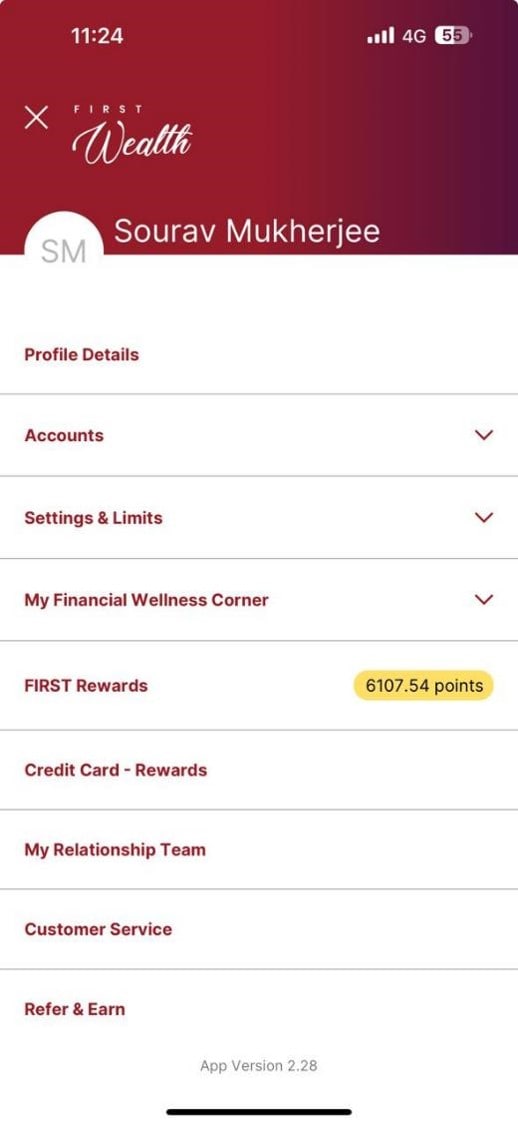 Select First Rewards from the menu on the top left