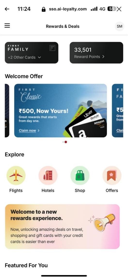 It's easy! Login and click on First Rewards cards on the main page or follow the 3 quick steps given below